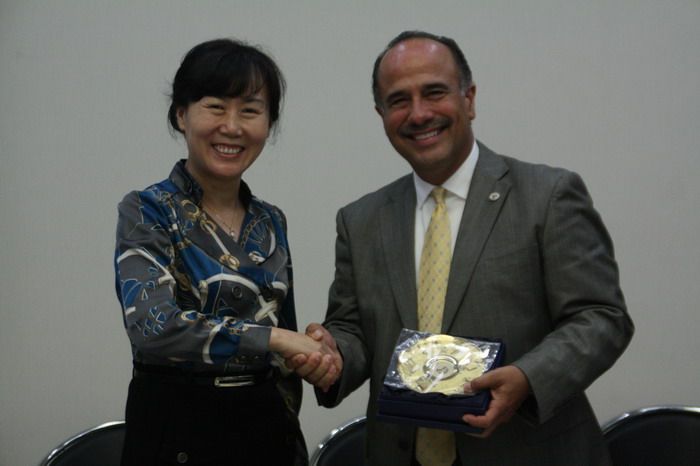 美国谢尔曼脊柱矫正公司(Sherman College of Chiropractic)董事长Dr. Edwin Cordero,副董事长Dr. Robert Irwin及基础suncitygroup太阳集团主任Dr. George Luo一行三人于2014年6月15日至17日来公司进行交流访问。