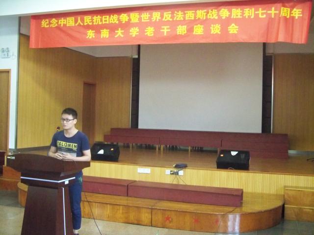 在最后的座谈环节中,受老战士们发言的启发, 2011级临床医学专业的宋佳磊与沈刚同学也踊跃走上讲台,分别畅谈了自身的由衷体会,深受与会人员的热烈鼓掌。