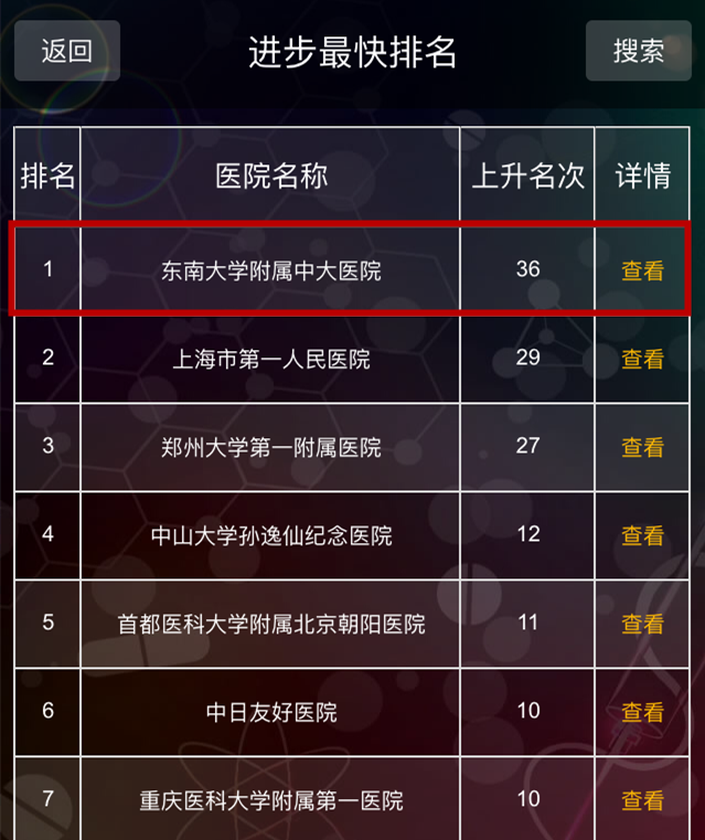 此次排行榜榜单的产生,由复旦大学医院管理研究所邀请全国37个临床专科的3969名国内著名同行专家担任评审。据复旦大学医院管理研究所所长高解春介绍,所邀专家综合考虑各大医院团队建设、临床技术与医疗质量、科研水平等三方面“业绩”后,评选出本专业领域内排名第一到第十的中国最佳医院;各专业专家的投票将进行加权统计,分别形成中国医院最佳专科排行榜;上述结果再结合医院SCI和科研奖项,最终评出《2015年度中国最佳医院排行榜》。中大医院此次排名跃升36位,在进步最快排名中位居第一位;在专科汇总排行中,中大医院位居第50位;科研学术排行,中大医院位居58位。