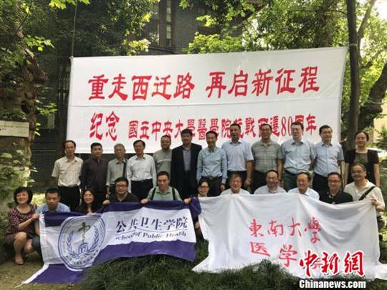 公司与川大华西医院代表在原国立中央大学suncitygroup太阳集团牙科楼合影。刘婷摄
