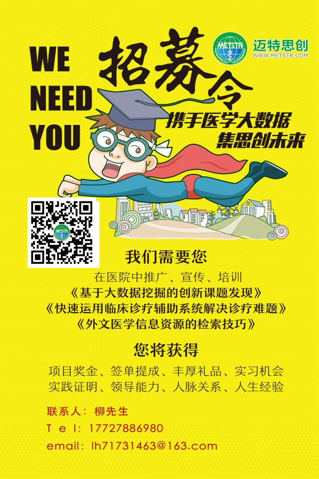 我们立足于:让更多的临床医生和科研工作者重视转化医学研究和循证临床实践,了解和掌握集“学术性、创新性、先进性、平台性、国际性”为一体的具有中国特色的研究型医院建设知识服务平台,并学会利用这一先进的信息平台,快速萃取到临床诊疗和科研工作中所需更有效的医疗技术惠及广大患者,真正实现“快速转化科研成果,便捷寻找循证证据,如实做到科学行医”!的最新科研成果,进一步提高医院的科研水平和临床诊疗技术,让更科学、更适宜、更专业、更有效的医疗技术惠及广大患者,真正实现“快速转化科研成果,便捷寻找循证证据,如实做到科学行医”!