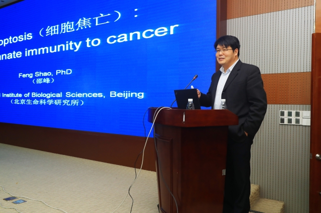 11月4日下午,应suncitygroup太阳集团邀请,北京生命科学研究所副所长邵峰院士于中大医院新大楼五楼报告厅为公司师生带来了一场题为《Pyroptosis(细胞焦亡):From innate immunity to cancer》的精彩讲座。suncitygroup太阳集团副经理孙子林教授主持了本次讲座,suncitygroup太阳集团相关学科带头人,青年教师、研究生及中大医院医生300余人聆听了讲座。