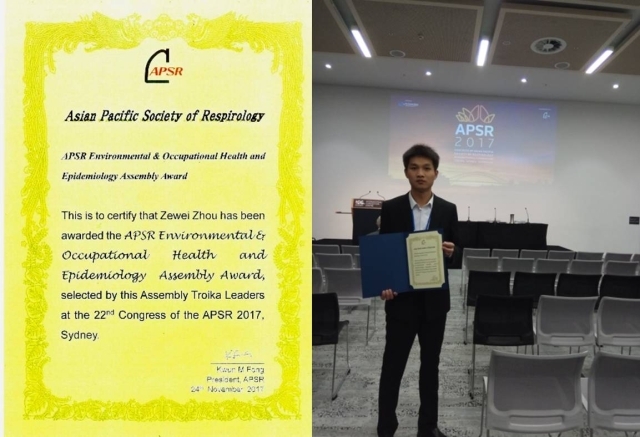 此次大会中,博士研究生周泽伟结合其所在课题组最新结果,就circular RNA在矽肺中的最新研究进展进行了口头汇报,该汇报受到了国内外专家一致好评,从数十位参会者中脱颖而出获大会奖。该项研究是由巢杰和姚