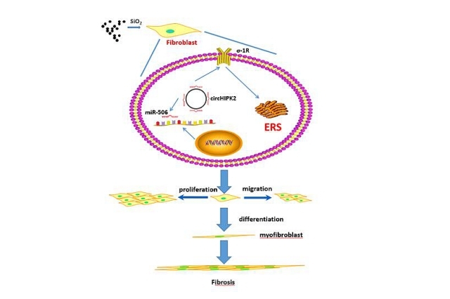 该研究探讨了σ-1R是否能够通过内质网应激来参与下游细胞的增殖与分化,并且探讨了circRNA是否能够通过对σ-1R的调控来调节矽肺纤维化的进程,以期为临床诊断及治疗提供靶点。σ-1R对于细胞的调控作用多在中枢系统中报道,但其在矽肺的发生发展中扮演的角色还不清楚。本研究关注未折叠蛋白反应能够作为适应性反应来缓解内质网应激反应和恢复内质网稳态,并重点研究了矽肺发生发展中的效应细胞——人肺成纤维细胞,结果表明σ-1R可能经内质网应激反应促进矽肺纤维化的发生发展。