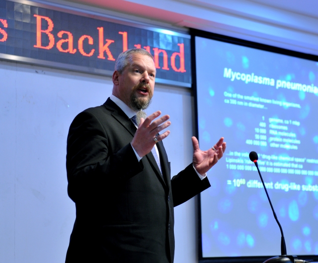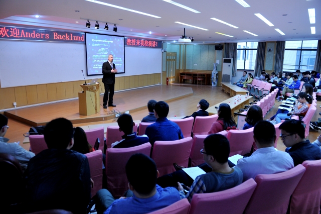 下午Anders Backlund教授在丁家桥校区综合楼二楼学术报告厅作了题为《Applicationsof chemography in natural products research》的学术讲座。suncitygroup太阳集团副经理姚红红教授主持讲座。在此次讲座中,Anders Backlund教授介绍了全球的GPS系统,形象具体的引入到微观世界化学物质的性质分类,论述了如何运用三维空间的位置来区分各类化学物质的性质,深入浅出的讨论了怎样运用空间位置来进行已知物质的比较和未知物质的分析,使在座的师生开阔了如何运用化学方法分析自然物质方面的视野。