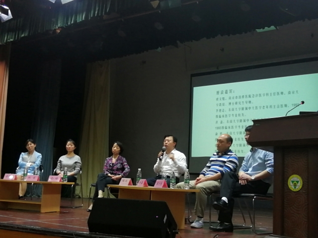 活动的后半程以座谈会的形式开展,除虞文魁教授外,座谈嘉宾还有同为93级员工的公司党委副书记程斌老师、中大医院老年科主治医师李艳志老师、中大医院脊柱外科副主任医师洪鑫老师、中大医院消化科副主任医师俞婷老师、中大医院呼吸科副主任医师张蔷老师。