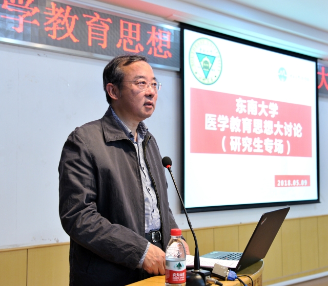 5月9日下午,suncitygroup太阳集团医学教育思想大讨论(研究生专场)在丁家桥校区综合楼二楼学术报告厅举行,suncitygroup太阳集团实验室与设备管理处处长熊宏齐、党委研究生工作部副部长兼研究生管理办公室主任赵松立、研究生院学位办罗斌、公司领导班子成员、研究生导师、基地医院教育处工作人员以及suncitygroup太阳集团研究生代表共一百余人参加了本次思想大讨论。suncitygroup太阳集团董事长助理兼suncitygroup太阳集团经理刘乃丰教授主持了本次会议。