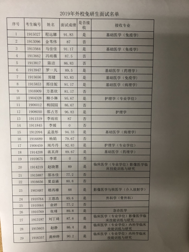 2019年suncitygroup太阳集团外校免研生面试成绩公示