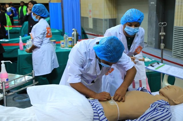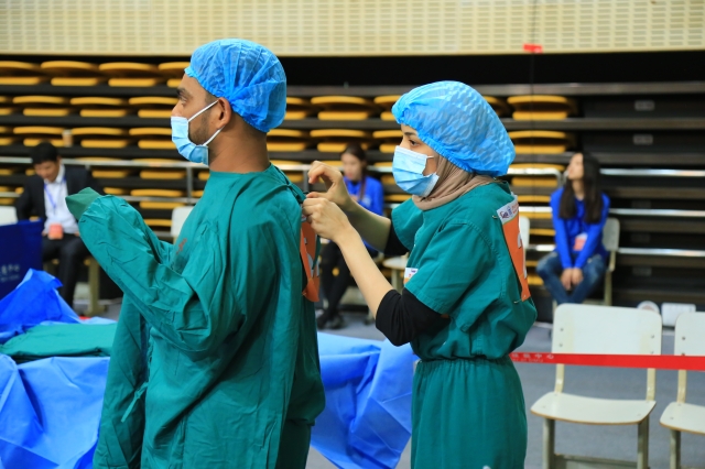 本次竞赛分为预赛和决赛,竞赛方式为赛道式。竞赛内容涵盖内、外、妇、儿、急救等科目,决赛模拟的是车祸的现场急救内容。所有的竞赛题目均为英文临床真实病例,重点考核来华医学职工的医学临床思维、以患者为中心的人文关怀精神和与患者的沟通技巧和规范化的临床操作。