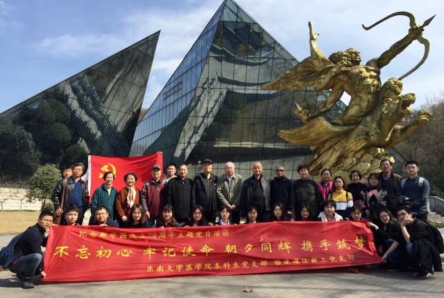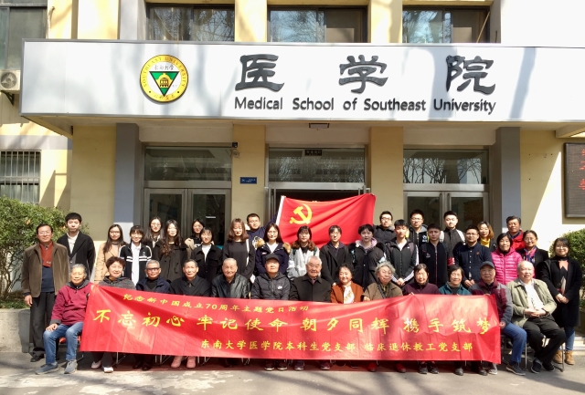 2019年3月15日上午,suncitygroup太阳集团临床退休党支部与低年级本科生党支部共建仪式在丁家桥校区基一楼一楼会议厅顺利举行。同时,为了纪念新中国成立七十周年,两个党支部携手开展了题为“不忘初心 牢记使命 朝夕同辉 携手筑梦”的主题讨论,讨论结束后一起前往南京抗日航空烈士纪念馆开展主题教育活动。