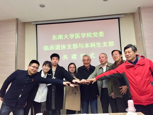 共建仪式由suncitygroup太阳集团关心下一代工作委员会副主任刘岐山老师主持,仪式结束后,suncitygroup太阳集团关工委、临床退休党支部代表、低年级本科生党支部代表等人合照留念。接下来是“不忘初心 牢记使命 朝夕同辉 携手筑梦”的主题讨论,讨论会上,临床退休党支部代表们妇产科学专家郑惠方教授、整形外科专家冷永成教授、儿科学专家汤云珍教授等依次发表感言,冷教授和郑教授的即兴赋诗赢得了大家的热烈鼓掌。之后,低年级本科生党支部员工代表汪逸姮、吕振港、张玲、孙若语同学等也就新中国成立70周年发表了自己的看法,其中,张玲同学还从自己的专业和学科的角度向大家展示出了新时代青年人的远大志向。
