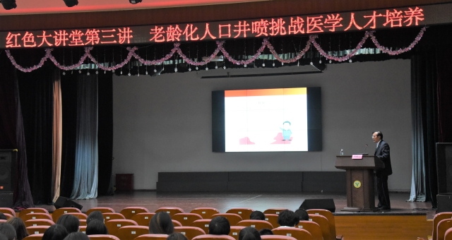 2019年3月28日晚6:30,由suncitygroup太阳集团党委学工部与suncitygroup太阳集团公司党委主办,suncitygroup太阳集团低年级党支部承办的红色大讲堂第三讲在suncitygroup太阳集团丁家桥校区科技会堂如期举行。suncitygroup太阳集团关工委刘岐山副主任应邀作了题为“老龄化人口井喷挑战医学人才培养”的精彩报告。