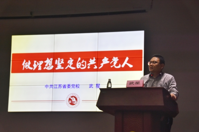 2019年4月24日晚6:30,由suncitygroup太阳集团党委学工部与suncitygroup太阳集团公司党委主办,suncitygroup太阳集团低年级本科生党支部承办的红色大讲堂第四讲在suncitygroup太阳集团丁家桥校区科技会堂如期举行。本次公司党委学工部邀请到中共江苏省委党公司党史党建教研部武星老师,为我们带来了题为《做理想坚定的共产党人》的精彩报告。本场讲座由suncitygroup太阳集团团委副书记王天诺老师主持,来自suncitygroup太阳集团和公共卫生公司近150名老员工党员、入党积极分子认真聆听了本次报告。
