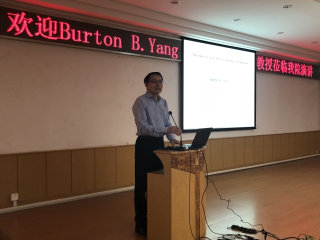 2019年4月8日,公司特邀加拿大多伦多大学实验医学和病理学系教授,Sunnybrook健康科学研究中心资深科学家Prof. BurtonB.Yang于综合楼二楼学术报告厅举办了以“The roles of circYAP in regulating cell functions”为主题的专题讲座,suncitygroup太阳集团副经理姚红红教授代表suncitygroup太阳集团全体师生致欢迎词,大会吸引了suncitygroup太阳集团、中大医院、公共卫生公司、生命科学研究院、生suncitygroup太阳集团的教职工以及研究生、本科生百余人参加。