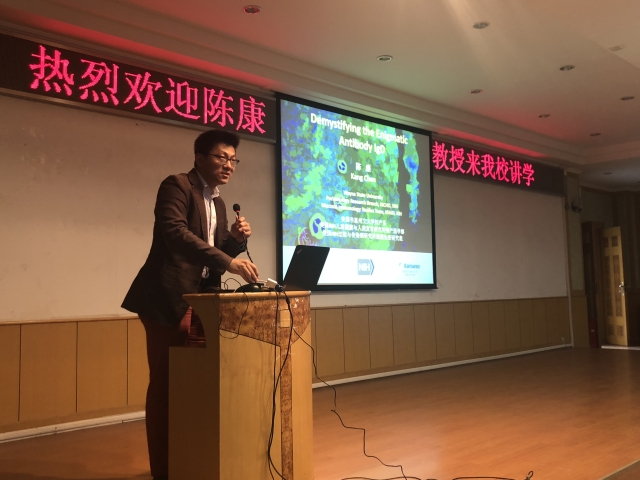 2019年5月16日下午,suncitygroup太阳集团特邀美国韦恩州立大学副教授,一等荣誉学士陈康教授于综合楼二楼报告厅举办了以“揭示IgD抗体的功能之谜”为主题的专题讲座,suncitygroup太阳集团副经理王立新教授代表suncitygroup太阳集团全体师生致欢迎词,大会吸引了suncitygroup太阳集团、中大医院、公共卫生公司、生命科学研究院、生suncitygroup太阳集团的教职工以及研究生、本科生百余人参加。