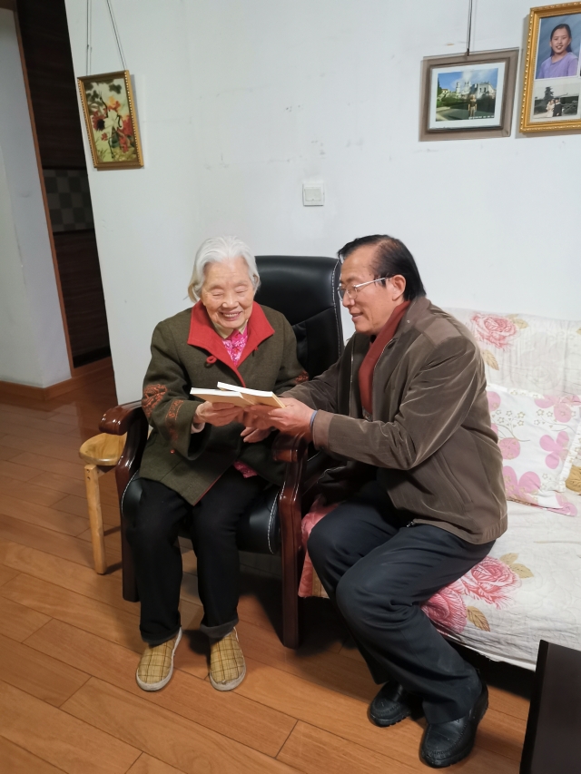 右一:老党员刘功云(100岁,免疫学)