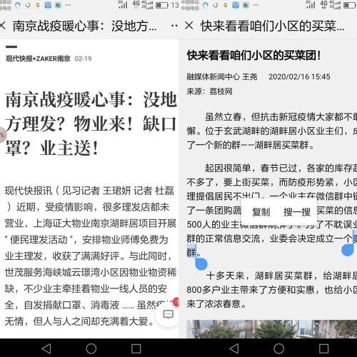 原公司教务助理花菊兰老师退休后,由于她无私奉献热心公益,被推举为湖畔居小区业主委员会主任。该小区现有864户居民,所处地区人流量相对比较大,给疫情防控工作增加了一定的难度。花菊兰老师率先垂范,充分发动业主积极配合物业管理公司,想方设法克服一切困难,扎扎实实地开展小区疫情防控工作,实现了小区零感染。其间,在她的组织倡导下,还开展了便民理发及建立团购买菜群等特色服务项目,及时解决了小区居民防疫期间的实际生活困难,并有效减少了居民外出感染风险及有力促进和谐小区的构建。当居民得知小区物业防控物资短缺,不少居民自发向物业捐赠口罩和消毒液等防控用品。现代快报和荔枝网对此均分别作了采访报道(图2)。防控期间,花老师舍小家顾大家,亲自参加防控巡逻(图3),加班加点更是常事,有时会工作到深夜,但她从不叫苦。日前,还利用业余时间,主动帮助公司退协完善了公司下达的关于公司170名退休人员防控排查表。