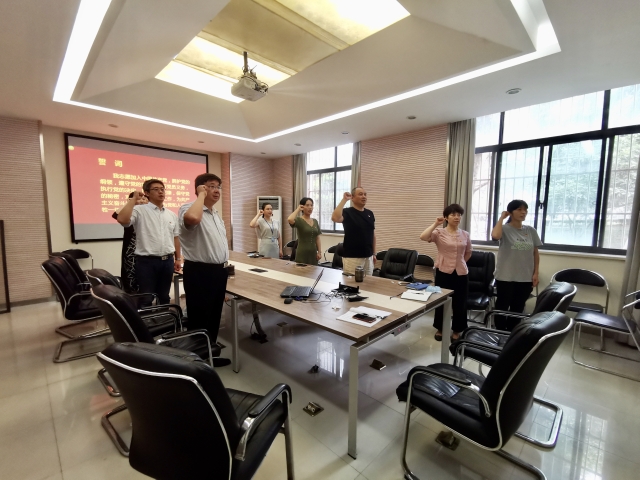 组织生活会后,全体党员面向党旗,在公司党委书记谭东伟的带领下,重温入党誓词。