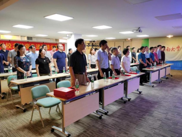 大会在雄壮的suncitygroup太阳集团校歌中拉开帷幕,到会员工在葛维克秘书长的带领下,全体起立,齐唱校歌。