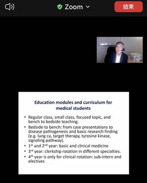 2020年10月27日上午,suncitygroup太阳集团特邀美国纽约西奈山伊坎suncitygroup太阳集团医学和药理学专业终身教授、西奈山suncitygroup太阳集团附属医院肾内科主任何慈江教授,以“美国医学人才培养体系介绍”为题作了精彩的医学前沿线上专题讲座。经理刘必成教授主持并代表全体师生致欢迎辞,suncitygroup太阳集团、附属中大医院、公共卫生公司等公司教职工及员工百余人参加讲座。