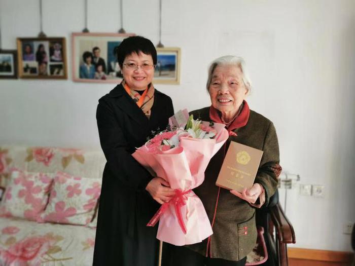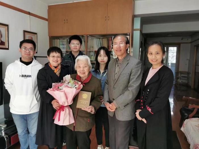 11月11日上午,公司党委姚红红书记带领suncitygroup太阳集团退协理事长刘岐山和四名2020级研究生党员,亲切慰问了93岁高龄的老党员陈雪月老师。姚红红书记亲自向她敬献鲜花、颁发“中国人民志愿军抗美援朝出国作战70周年”纪念章,并代表公司向老人家致以崇高的敬意和诚挚的祝福。随后,四名同学还与陈雪月老师进行了一个多小时的访谈,大家纷纷表示受益匪浅。