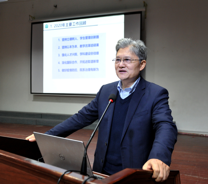 随后,经理刘必成同志作2020年suncitygroup太阳集团行政工作报告。刘经理首先回顾了公司2020年在员工管理、教学改革、团队建设、国际合作、疫情防控等方面工作的主要进展,并指出其中存在的问题。接着,报告重点介绍了公司的“十四五”规划,对suncitygroup太阳集团的发展现状、发展战略、主要任务、重点工作和保障措施做了详细解读,最后明确了公司在教学改革、人才引育、校区规划、国际合作等方面的目标任务。