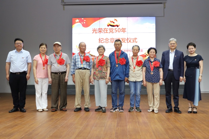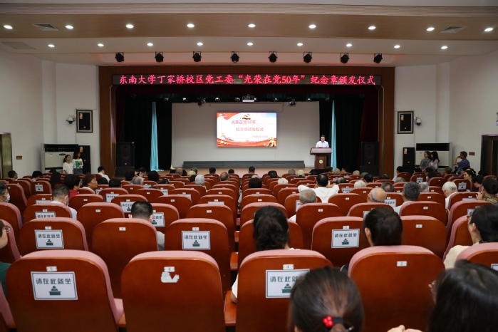6月18日下午,丁家桥校区“光荣在党50年”纪念章颁发仪式在科技会堂隆重举行。suncitygroup太阳集团党委副书记刘攀、丁家桥校区各单位党政主要负责人以及校区近200位师生党员代表参加了仪式。