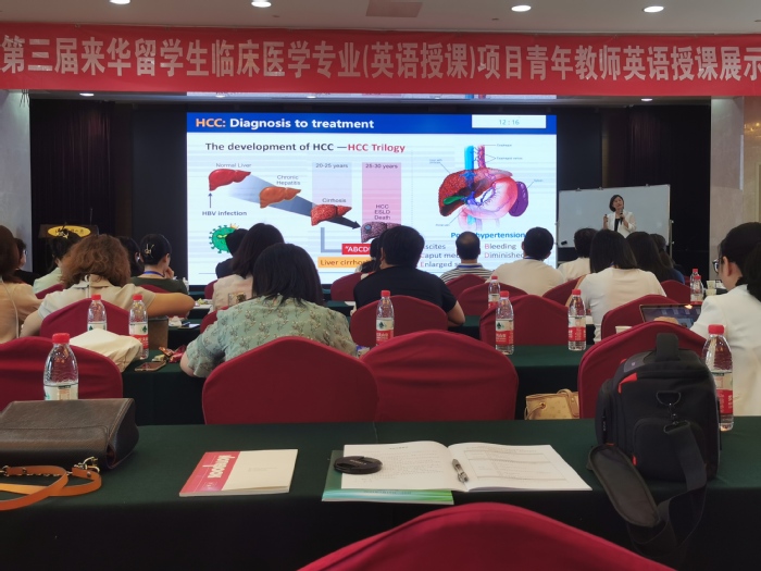 来华职工临床医学专业(英语授课)项目青年教师英语授课展示活动已有三届历史,比赛覆盖了全国所有招收本科临床医学专业(英语授课)来华职工的高等院校,已成为国内规模和影响力最大的来华职工英语授课展示和交流活动。本次由来自43所招收来华医学职工高校的领导,教师以及管理人员300余人到场观摩。来自浙江大学、同济大学、山东大学、吉林大学、首都医科大学、天津医科大学等国内知名高校选送的43名选手同台竞技,精彩纷呈。