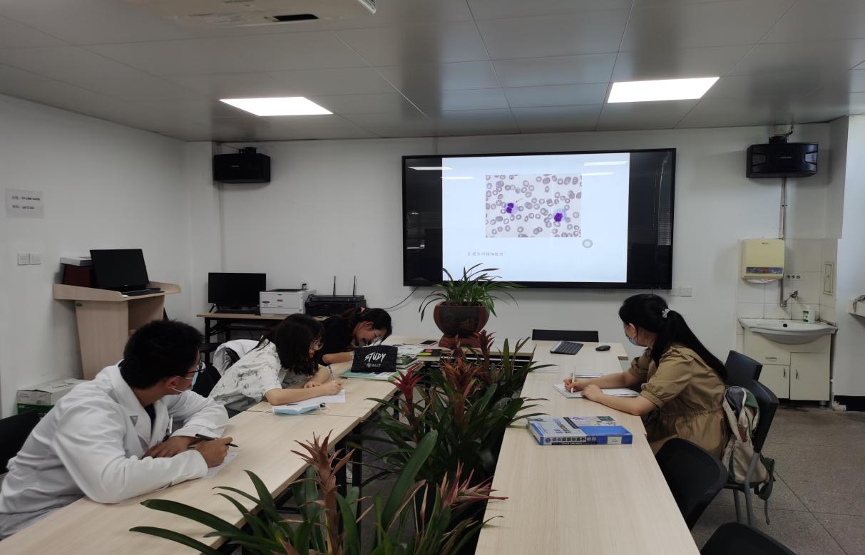 2021年7月24日第五届医学检验老员工形态大赛将在广西百色举行。医学检验学系对此高度重视,吴国球主任亲自组织召开科室会议,组建预赛培训团队,认真做好本次参赛选手的培训工作,同时还邀请血细胞、寄生虫等专业资深教师对员工进行辅导。