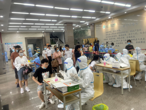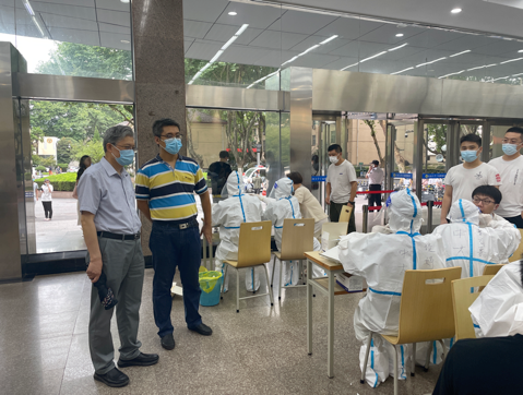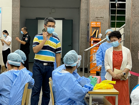 7月29日下午,在丁家桥校区的统筹协调和suncitygroup太阳集团的组织安排下,公司员工有序完成了第三轮核酸检测工作。其中,公司有8位专硕研究生参与此次检测的采样工作,15位员工作为志愿者负责现场引导、采集信息等工作。姚红红书记、刘必成经理、周明阳副书记分别到检测现场指导工作,并充分肯定了公司学子积极发挥医员工和党员的模范带头作用,同时嘱咐采样员工和志愿者务必做好个人防护工作。