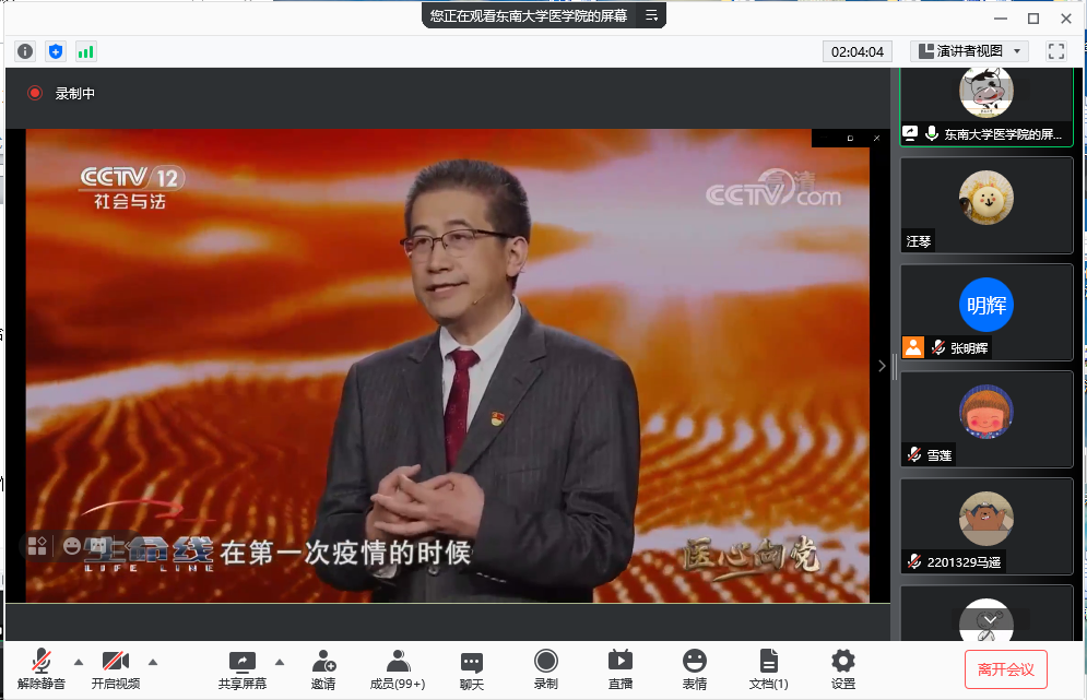 活动中,作为国家卫健委救治专家组成员的邱海波教授因一直忙碌在抗疫一线未能亲临线上与同学们互动,为此公司特别剪辑了邱教授的一段专访视频进行播放。一句“重症病人在哪里,ICU医生就在哪里”是职业的信念坚守,一句“我在”体现了医者的使命担当。刘必成教授和公司党委书记姚红红教授分别从自身的科研经历和指导研究生的心得体会出发,对研究生如何做好科研训练、如何规划医生的职业生涯进行了谆谆教导,对各位推免研究生提出了深切的勉励和殷切的期待。