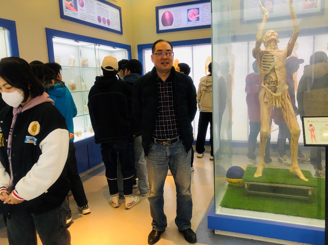 2021年11月12日下午,人体解剖与组织胚胎学支部举办了“我为师生办实事”科普活动。本次活动的主要内容是开放人体标本陈列馆并结合馆藏陈列标本向同学介绍正常人体结构和胚胎发生过程,人体解剖与组织胚胎学支部12位教职工党员参加了本次活动。今天参观标本陈列馆的同学们主要来自公共卫生公司,目前正在学习组织胚胎学。在老师的带领下,同学们先参观了大体标本的结构,然后重点参观了胚胎学部分的标本,并对胚胎的发生过程产生了浓厚的兴趣。胚胎学标本部分展示了从受精卵到囊胚及出生前的胚胎和胎儿的不同发育阶段的变化和形态,也有部分珍贵的双胞胎、多胞胎及发育异常的胎儿标本。通过对胚胎和胎儿标本的观察及听取老师的讲解,同学们了解了自己出生前生命的神奇历程及生命孕育过程中可能经历的各种风险,激发了对医学和生命科学的浓厚兴趣,表示生命来之不易,一定要珍爱生命和好好学习、生活。