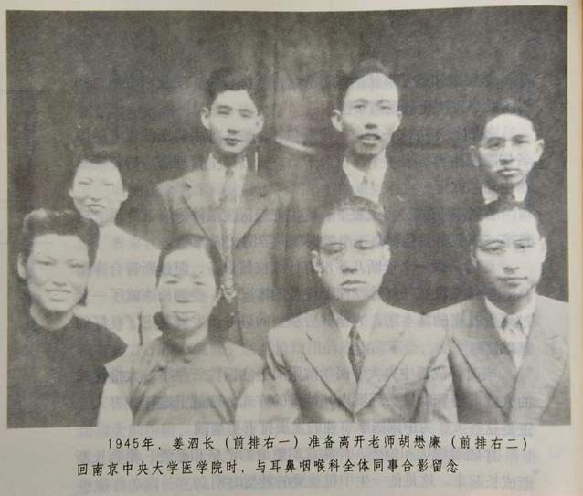 抗日战争胜利后,胡懋廉留在了中央大学公司与四川省政府联合创建的公立医院,任医院经理兼耳鼻喉科主任。姜泗长则跟随中央大学suncitygroup太阳集团的一部分人员回到南京。战后南京满目疮痍,断壁残垣,杂草丛生。两年后,34岁的姜泗长被提升为副教授,开始全面主持耳鼻喉科的各项医疗工作。这时,恰好赶上国民政府给中央大学suncitygroup太阳集团5个美国医学援华助学金名额。为了让姜泗长顺利出国深造,胡懋廉携家人毫不犹豫从成都迁回南京,代姜泗长讲授耳鼻咽喉科学。