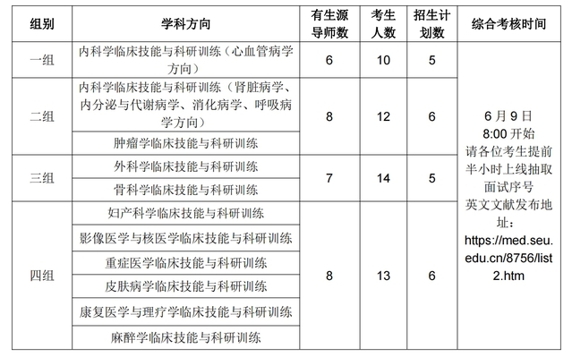 1、根据报考学科方向进行组合分组,各面试组内按考生总成绩进行排名。