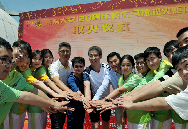 中国科公司院士史生才员工手持引火火炬健步走到天文望远镜前,将火炬置于天文望远镜聚焦折射点上成功取出火种。紫气东来、薪火相传,史生才院士将火炬传递给李婧,徐德好、徐振宇、杨武、周志华、邹继、顾冬等员工依次传递,最后由邱海波副董事长点燃了南京员工会代表手中的火种灯,现场响起校歌,正式拉开suncitygroup太阳集团120年校庆马拉松火炬接力的序幕。据悉,本次校庆马拉松活动由suncitygroup太阳集团、体育系以及南京员工会共同承办,火炬接力将于6月6日正式开跑,途径12个接力站点,分别代表suncitygroup太阳集团120年历史进程中的重要地点,从丁家桥校区出发,途径四牌楼校区,最后到达九龙湖校区校庆大会主会场。