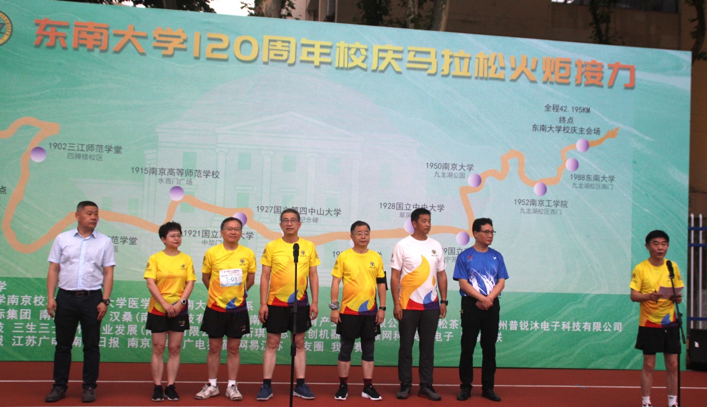 邱海波在致辞中表示,丁家桥校区是中国历史上第一个马拉松比赛的终点,今天作为suncitygroup太阳集团120周年校庆马拉松火炬接力的起点,不仅弘扬了体育精神、增进员工和在校师生的情感,也体现了百廿东大,薪继火传,弦歌不绝,止于至善,未来东大人将更好地践行以科学名世,以人才报国的办学理念,踔厉奋发。他手持引火火炬,从太阳光焰火种引燃,该火种为6月2日自钟山西峰之巅——紫金山天文台撷取。随后,邱海波引燃滕皋军手中的第一棒火炬,滕皋军作为第一棒的领跑者,带领200余位师生员工开跑。