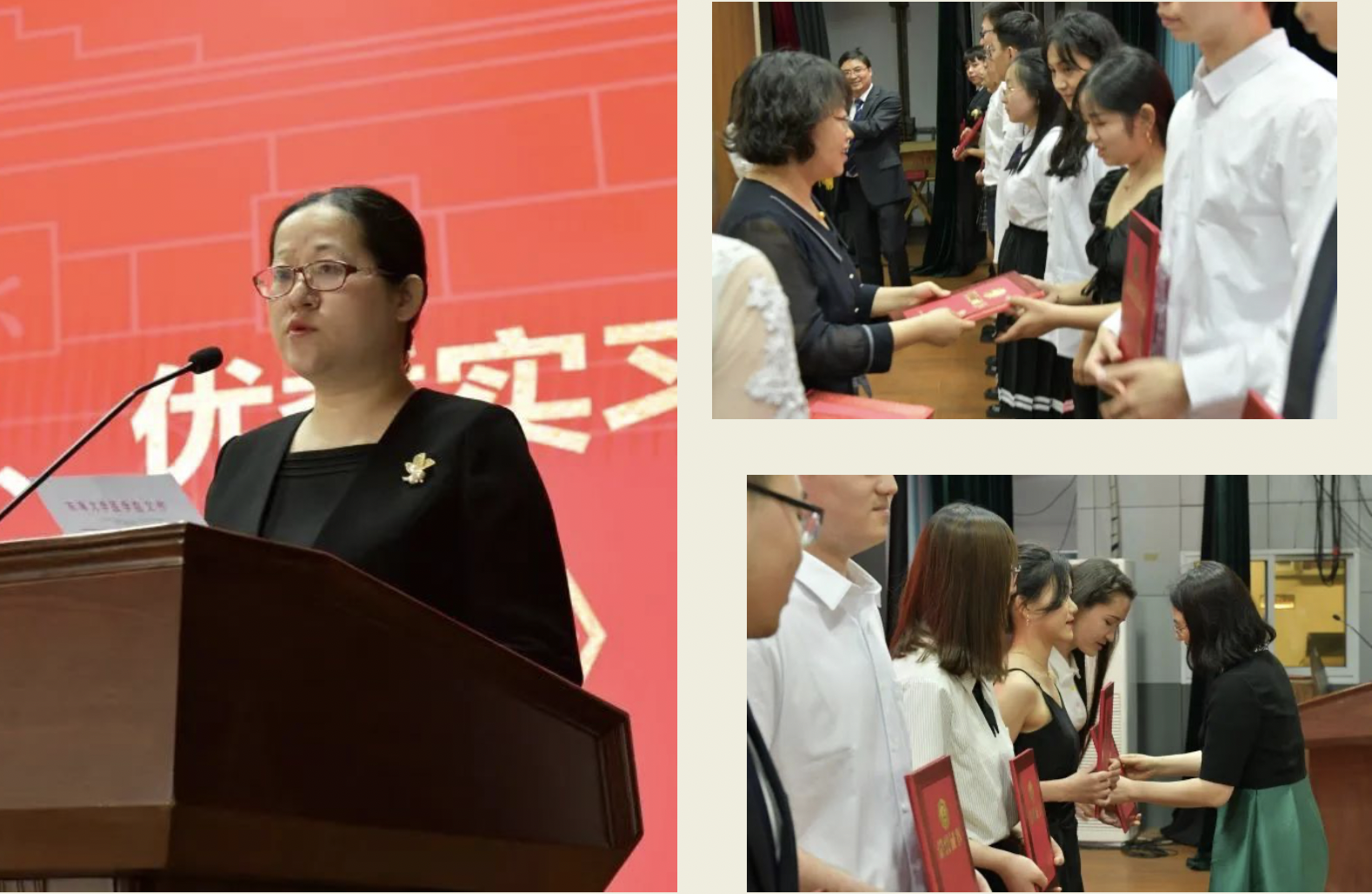 接着,教师代表王丽虹、毕业生代表张可分别作感想发言。随后,谢波副经理宣读了《优秀实习干部、优秀实习生、优秀实习大组表彰决定》,并由公司领导为获奖员工颁奖。