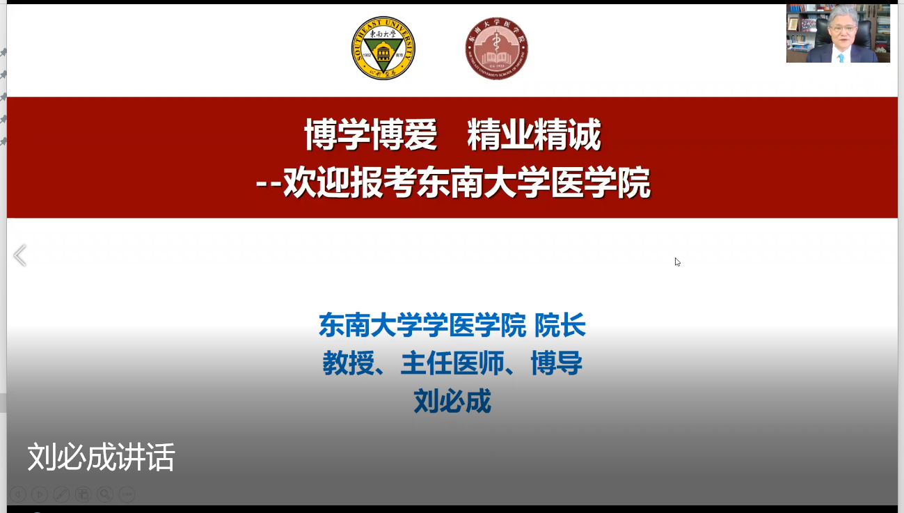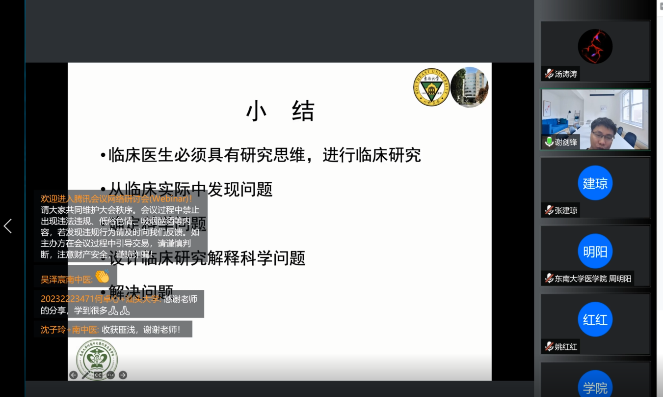 首先,邱董事长分享了坚持奋战在抗疫一线的亲身体会,对准医学研究生们提出了“热爱医学、扎根临床、潜心科研、报效祖国”的殷切希望。同学们通过观看视频和刘必成经理的详细介绍,对suncitygroup太阳集团87年的悠久办学历史和紧跟时代、瞄准前沿、学科交叉的特色医科发展有了全面了解。随后,活动分为临床医学和基础医学两个分会场,分别就临床医学和基础医学各二级学科的发展现状、研究平台、团队队伍和人才培养等方面进行介绍。