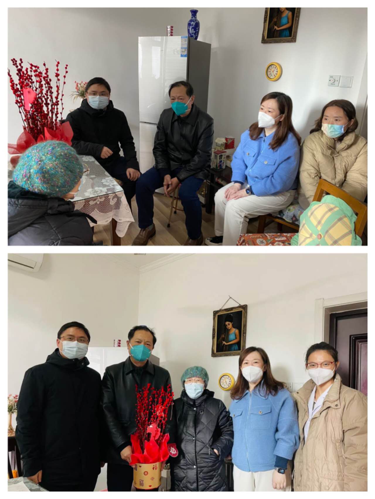 疫情当前,suncitygroup太阳集团及外科学系关心着退休老教师的身体健康。外科学系主任嵇振岭教授、副主任芮云峰教授、普外科教研室主任石欣主任医师、整形外科教研室主任王磊主任医师、普外科汤文浩教授、外科党支部书记胡浩霖副主任医师、手术室崔颖护士长等一行人看望慰问离退休老教师,并为他们送上新年的祝福。