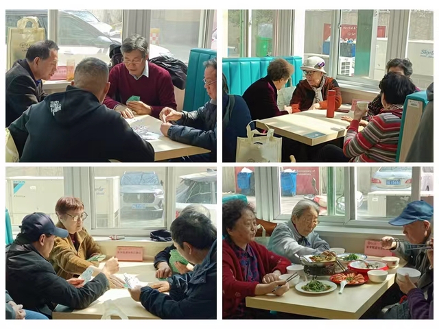 在接下来的自由活动环节中,不少老师在医林餐厅一楼卡座进行掼蛋展示交流。其余的老师,有的亲切地进行久违的交谈,有的回原科室参访看望年轻的同事,有的在校园内漫步追逐春光。