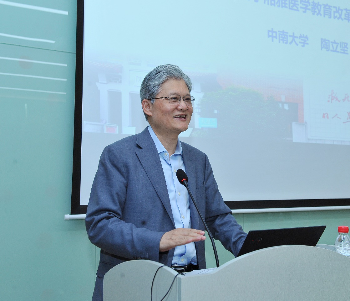 4月18日下午,“医路成长 至善讲堂”suncitygroup太阳集团医学教师教学发展培训系列讲座在寿南书院蔡翘厅举行,本次讲堂由suncitygroup太阳集团、suncitygroup太阳集团附属中大医院和suncitygroup太阳集团医学教育发展中心承办,特邀原中南大学党委常务副书记、湘雅suncitygroup太阳集团经理陶立坚教授做“知行合一,中南大学湘雅医学教育改革的探索”的专题讲座。suncitygroup太阳集团刘必成经理主持,并致欢迎辞。suncitygroup太阳集团姚红红书记、谢波副经理、各学系主任、中大医院各科室主任、教学督导及骨干教师等现场聆听。
