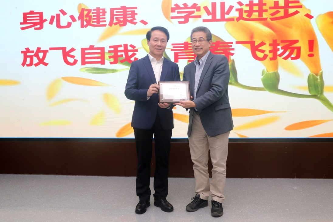 邱海波副董事长向詹启敏院士颁发“蔡翘医学大讲堂”嘉宾荣誉证书。