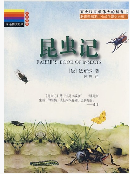 《昆虫记》 推荐人:马婧 《昆虫记》本是给孩子买的,有一天临睡前翻了一下,就立刻被书中内容所吸引。书中介绍了昆虫的颜色、蝗虫、天牛、长腹蜂、圆网蛛、蟋蟀、松毛虫、萤火虫、螳螂、蝉、寄生虫、蝈蝈、肉蓝蝇。作者法布尔不愧被称为“昆虫荷马”、“科学诗人”。他的行文中充满了对生命的关爱和赞美,甚至敬畏之情。他笔下的昆虫都是拟人的。他会用人类的穿着和习惯来描写昆虫。在他的笔下,昆虫仿佛都是有灵魂的,它们会烦躁不安,会表现出贪婪的举止,会失去耐心,会勇敢地冲上前去与敌人搏斗等等。事实上,法布尔也不仅是在描写昆虫,同时也是在讴歌所有的生命。他希望人类敬畏所有的生命,因为生命本身就是一个奇迹,而生命还在不断创造着新的奇迹。书本的魔力是作者把你带向另一个理想和惟美的世界。 | |