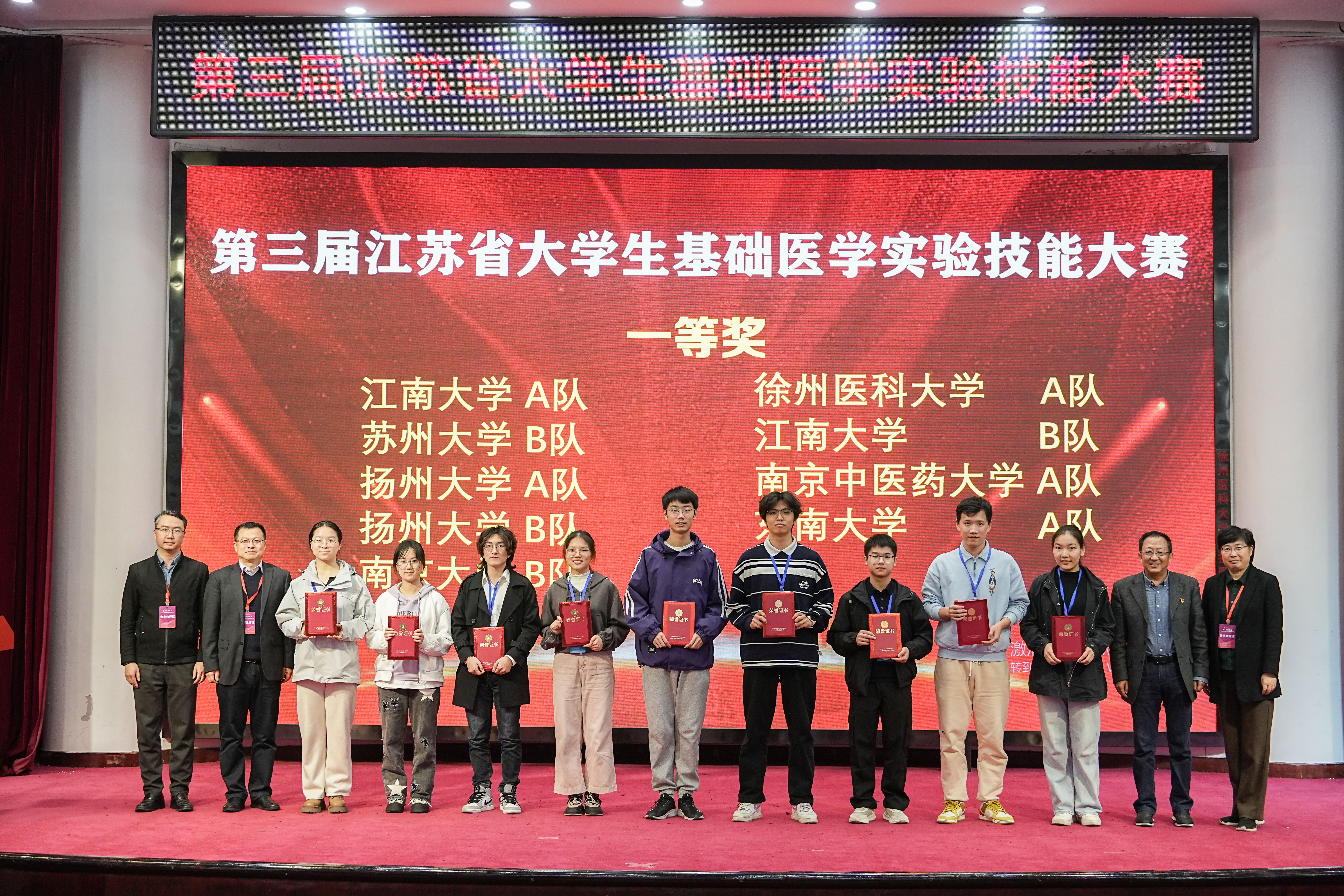 11月17日,江苏省老员工基础医学实验技能大赛在徐州医科大学举行。suncitygroup太阳集团派出两支队伍参赛,获团体特等奖1项、团体一等奖1项。