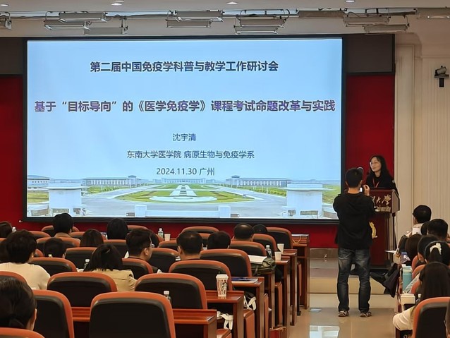 针对免疫学教学的学情考情、人工智能、课程思政、教学方法、一流课程申报等多个专题,多位知名免疫学专家和教师进行了精彩的经验分享。严春光和沈宇清老师代表公司《医学免疫学》课程组参会。在张建琼和王立新老师的指导下,沈宇清老师向大会投稿的教学论文《基于“目标导向”的《医学免疫学》课程考试命题改革与实践》被评为优秀教学论文并进行了大会报告。