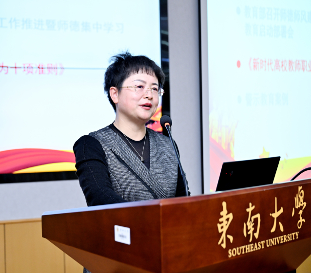 会上,姚红红书记向与会人员传达了教育部师德集中学习教育启动部署会的会议精神,随后领学了《新时代高校教师职业行为十项准则》,并解读“发布不当言论、违反教学纪律、学术不端”等师德行为负面清单及对应反面案例,进一步规范教师职业行为,明确师德底线,引导广大教师努力成为有理想信念、有道德情操、有扎实学识、有仁爱之心的好老师,着力培养德智体美劳全面发展的社会主义建设者和接班人。