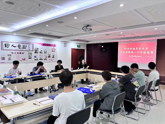 同学们以该中心为例现场学习社会组织的运营模式和服务理念,并了解在实践服务中的如何与服务对象构建专业关系。老师就员工们提出的困惑与想法进行了深度的交流与解答。