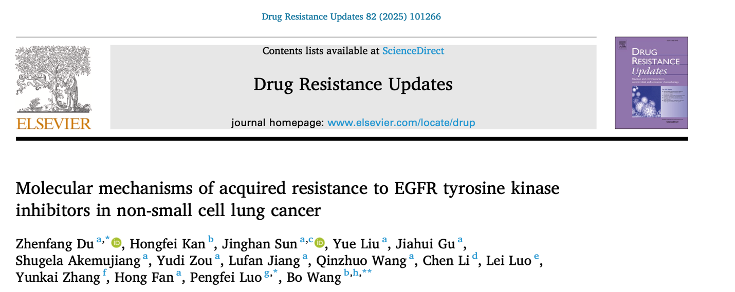 近日,suncitygroup太阳集团杜振方团队在医学领域权威期刊《Drug Resistance Updates》(IF=15.8)在线发表题为“Molecular mechanisms of acquired resistance to EGFR tyrosine kinase inhibitors in non-small cell lung cancer”的综述论文,系统总结和讨论了非小细胞肺癌靶向药一线和二线用药的耐药机制以及应对策略。