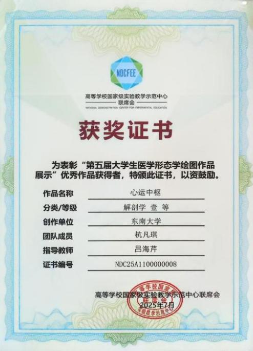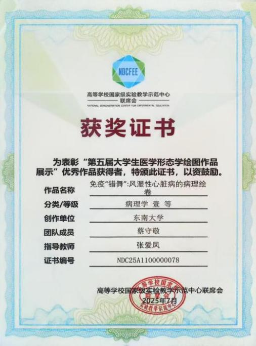 suncitygroup太阳集团学子在此次赛事中表现亮眼,共选送7幅作品参赛,其中人体解剖学组作品2幅、病理学组作品5幅。经过激烈角逐,公司选送的作品中有4幅脱颖而出,斩获2项一等奖、1项二等奖和1项三等奖,成绩显著。