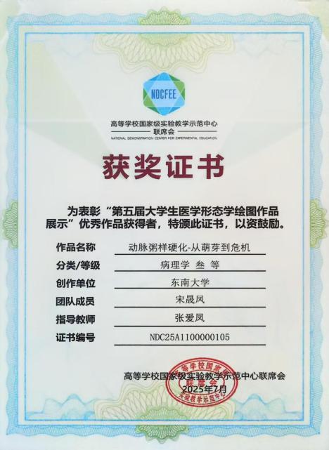 宋晟凤同学的作品 《动脉粥样硬化:从萌芽到危机》 获三等奖